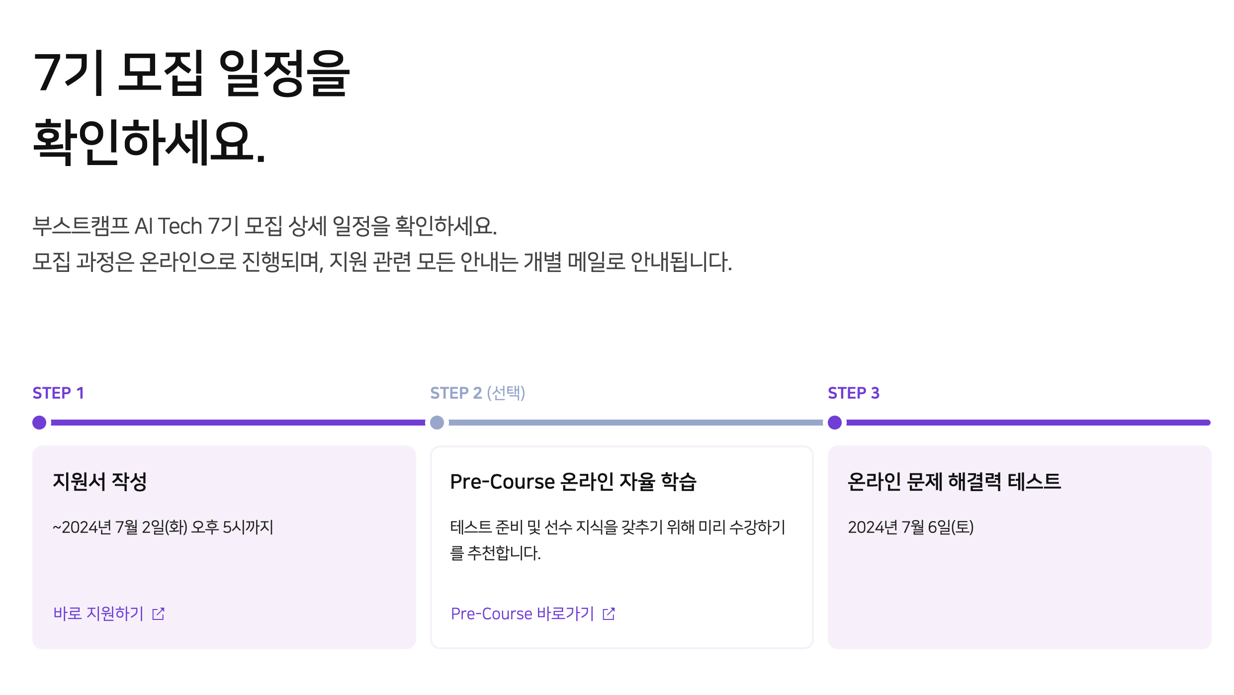 1.일정 2.프리코스 퀄리티 3.전 기수 후기 삼박자가 맞아 지원하게 되었다.
