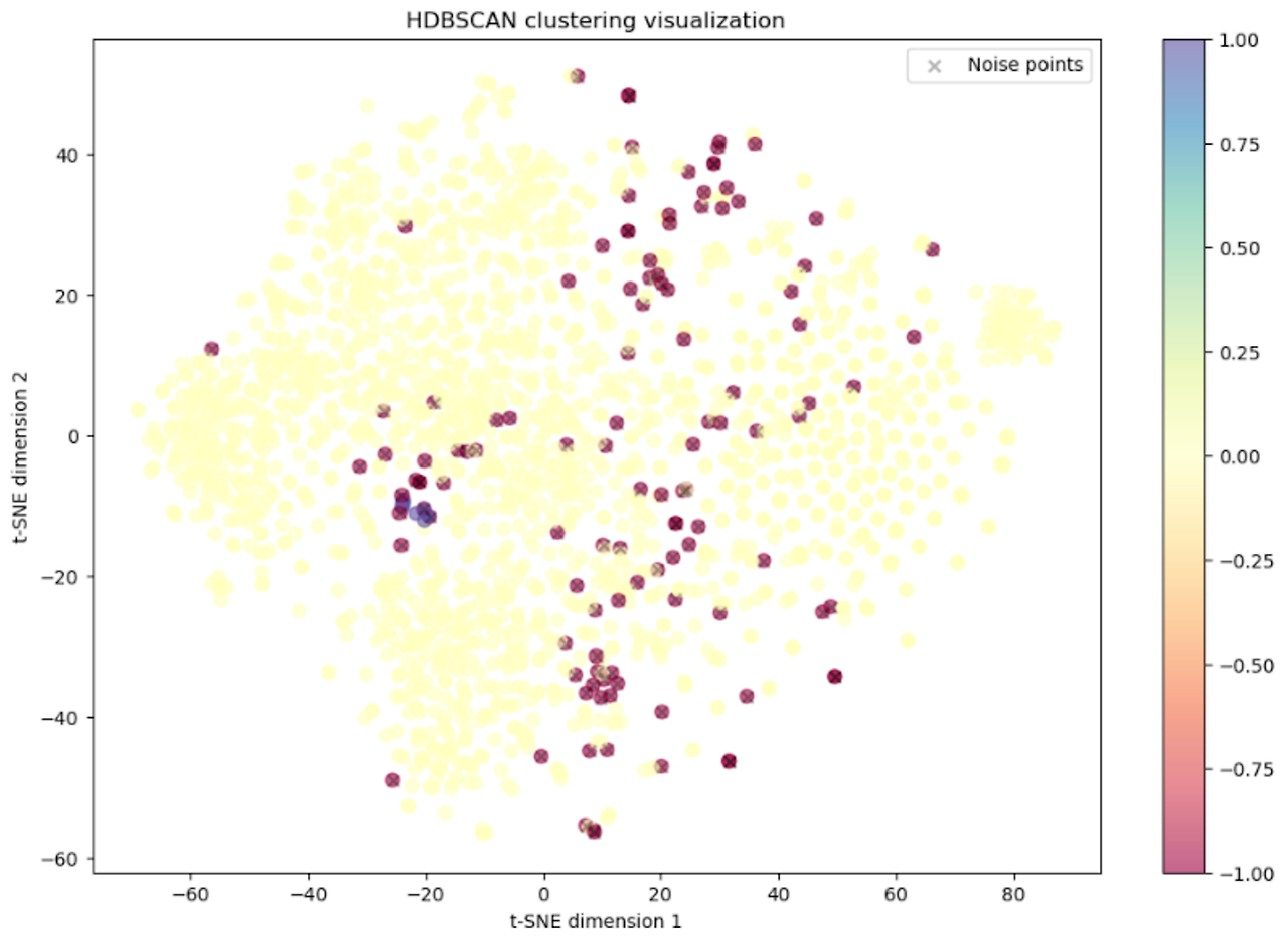 Clustering 기법으로는 K-Means와 HDBSCAN을 사용하였으며, 두 기법 모두 데이터의 차원을 t-SNE로 축소하여 처리하였다. 이를 통해 문제 유형 간의 분류 가능성을 실험적으로 확인하고자 하였다.